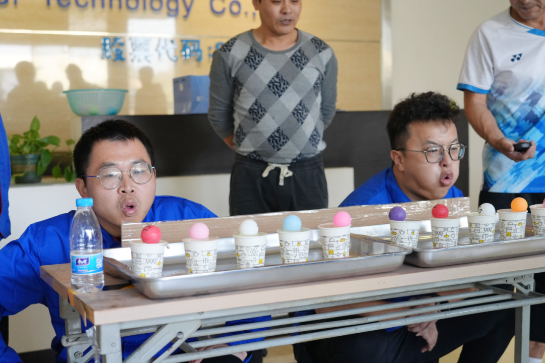 而在“吹牛皮”项目中,参赛者们展开的是肺活量与呼吸控制能力的激烈比拼。此项目看似简单质朴,实则需要极大的耐力与高超技巧。参赛者们鼓起腮帮,奋力吹动乒乓球。观众们则屏息凝神,为每次将乒乓球一扫而空的精彩瞬间欢呼雀跃,场面紧张而又刺激万分。